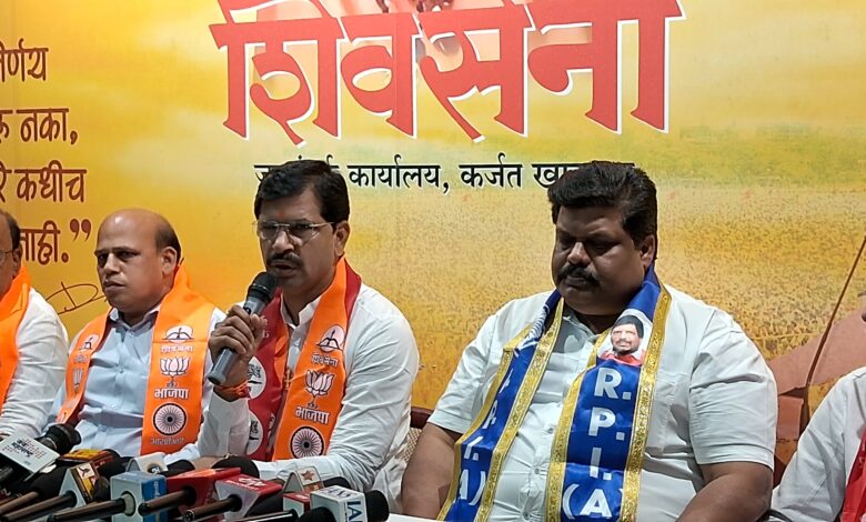 कर्जत तालुक्यात महायुती बद्दल होणारी उलट सुलट चर्चा आता थांबणार असून जिल्हा परिषद व पंचायत समितीच्या निवडणुकीत ” शिवसेना – भाजपा – आर पी आय – शेकाप ” अशी ” अभेद्य महायुती ” झाल्याची घोषणा कर्जत खालापूर मतदार संघाचे कार्यसम्राट आमदार ” महेंद्र शेठ थोरवे ” यांनी केली असून सर्वत्र महायुतीचाच विजयी होणार व भगवा फडकणार , यावेळी जिल्हा परिषदेच्या ६ जागा व पंचायत समितीच्या ६ जागा शिवसेनेला , भाजपला पंचायत समितीच्या ३ जागा , तर शेकापला पंचायत समितीच्या ३ जागा , असे घेतलेल्या पत्रकार परिषदेत आमदार महेंद्र शेठ थोरवे व सर्व पक्षीय नेते व पदाधिकारी यांच्या उपस्थितीत जाहीर केले .
