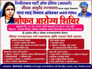 ….” माता रमाई जयंती निमित्त आर पी आय (आ ) पक्षा तर्फे किरवली येथे मोफत आरोग्य शिबिर संपन्न “…..